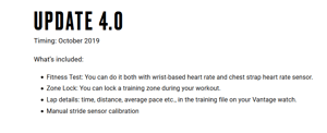 - Vantage will get pace and distance from foot pods