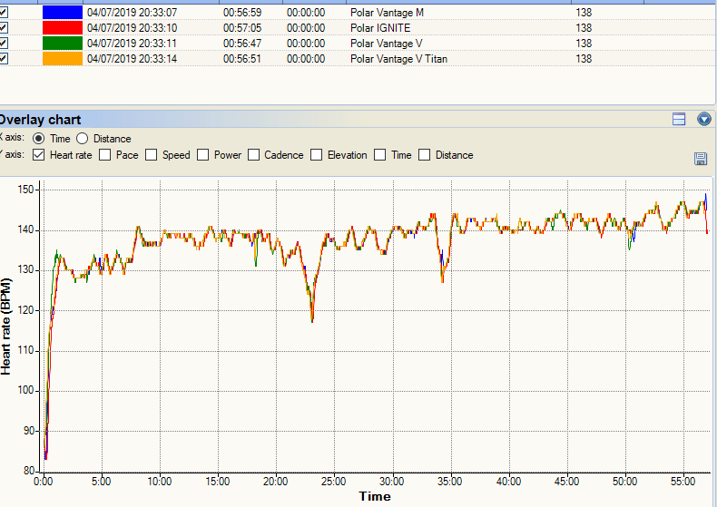 I’m curious how you’re able to overlay the results of various devices for comparison. I’m returning my Polar Vantage V for a V-Titan.. hoping I just had a defective device because oHr was often not close to where it should have been. When I get the V-Titan, I want to do some tests and compare my old M430, Titan-V, and the H10.