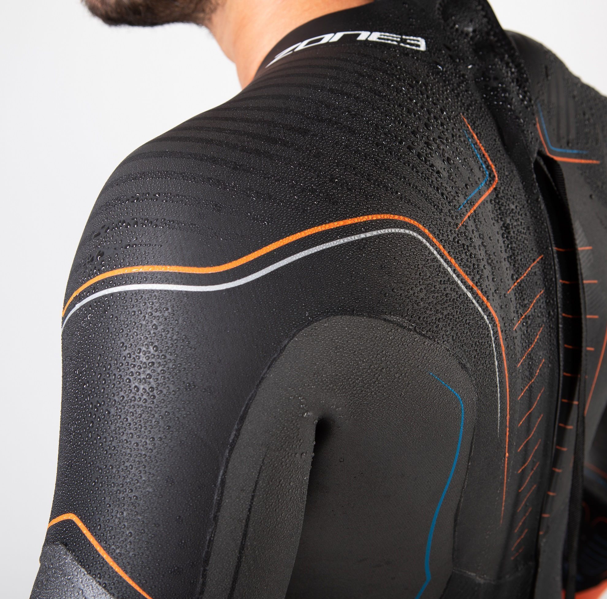 - Thin, 1.5mm one-piece shoulder panel extends from the middle of the chest to the centre of the back. This is made with Yamamoto’s premium #40 SCS which is super-light and has a high stretch. Few people will need 5mm neoprene for shoulder buoyancy…so why include it? Zone3 do not include it with the Vanquish.