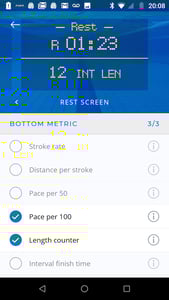You chose to display one metric from time, stroke rate, stroke count, distance per stroke, pace per 100, pace per 50, distance, length count, calories burned, pace and HR