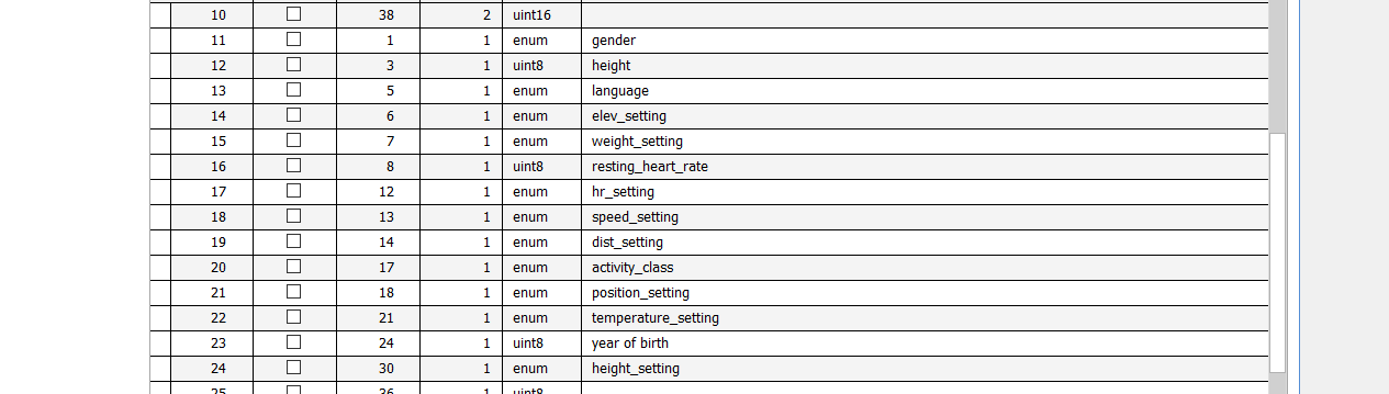 Here are some of the data elements in a FIT file that you might consider to be private & personal, you can see they include gender, height, weight & age/year of birth as well as language. I guess knowing what language I speak isn’t that personal…but the rest is. This image shows the record names but the record contents ARE POPULATED with the ‘correct’ data that I’ve not shown.