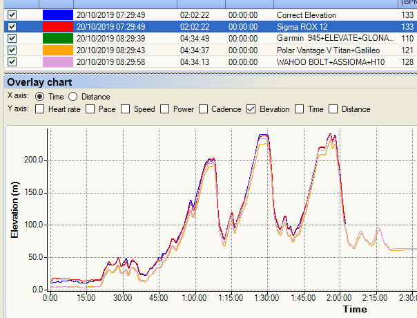 I’ve got lots of shorter, mostly flat rides like this one which doesn’t reveal too much about elevation accuracy and, because of end-of-season duathlons, I don’t have anything higher planned for a while (I’ll add some more charts in later, maybe Nov). These are pretty cool performances though.