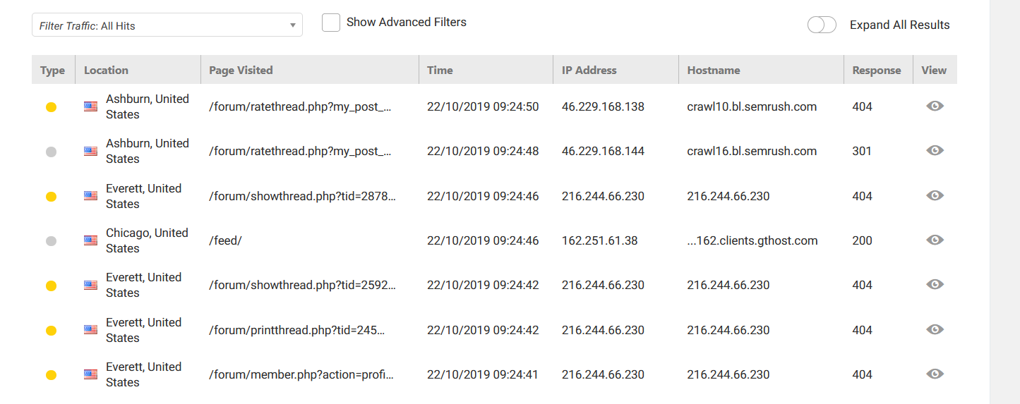 As an example here is a shot from my hit log from a few minutes ago. Look at the time stamps it’s almost literally every second that they’re up to something nefarious.