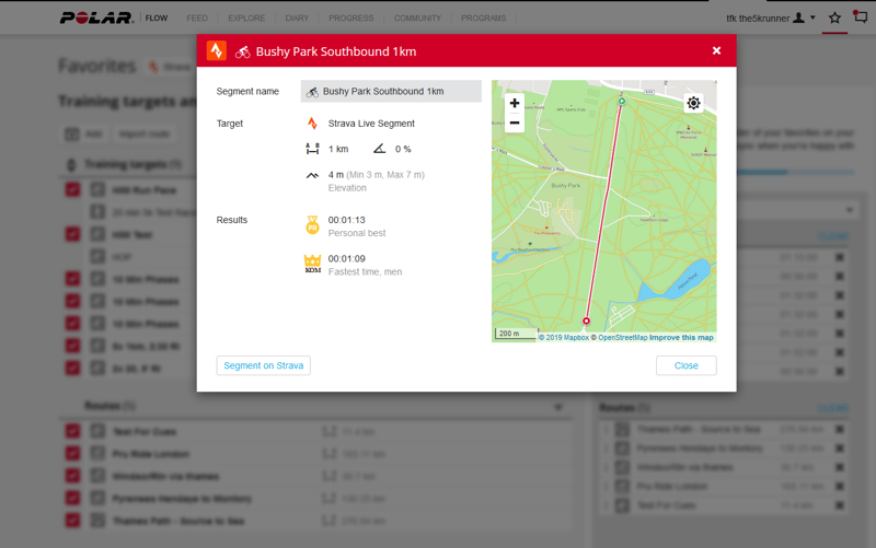 If you click on the routes, targets or segments then you get a pop-up with more detail, like these…