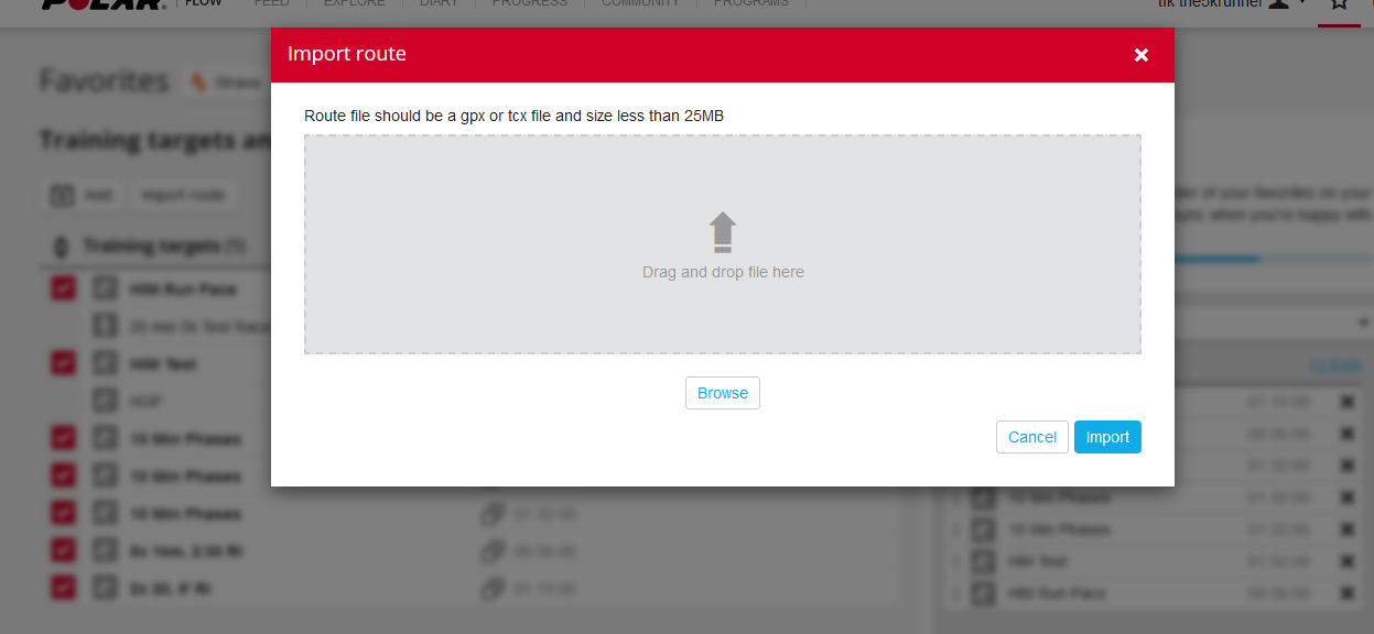 For any changes that you are able to make, you are directed back to the old pages…which is fine. The only exception here to that seems to be that you can drag and drop a route file to create a…err…route. This very exciting image shows you that.