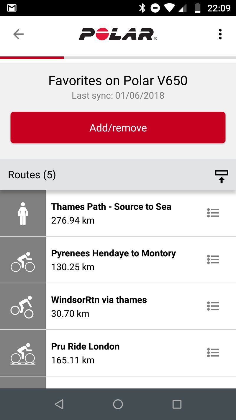 OK, it still looks a bit old fashioned but I think it’s now much clearer which favorites are on your device. Note that your device can be selected on the right hand side if you have more than one and STRAVA will appear very soon for the Vantage…like before Christmas ’19. You can even drag the order of your favorites around.