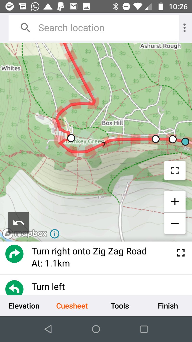 The app was SMOOTH to use with good zooming and a choice of maps. It seemed to flow well and logically as well as having responsive “tap the map” action to create a routing point. You can see that an elevation profile is automatically created as is a turn-by-turn cue sheet.