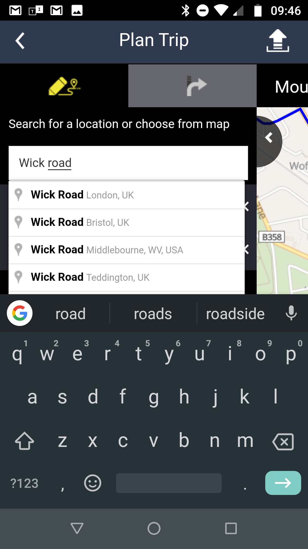 2. Select the desired route and then press the send to device icon in the top right of the app. (Please note that it may take a few minutes to send the route to the device depending on size and complexity).