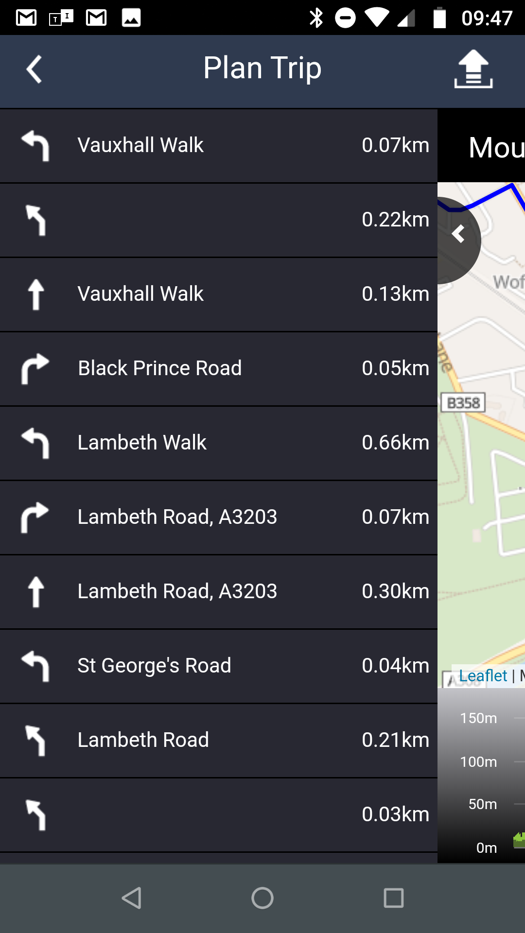 Looking at the app in more detail, the map type that I’ve shown below, in the slideshow, is the only one and you can plot your route on it manually, point-by-point or you can search for an address to automatically route to. Route choices are made for either MTB or road cyclists, however, as usual, many routes that cyclists often take are not chosen because they might be classed as pedestrian-only (that’s a problem with the map).
