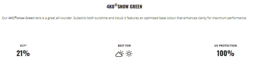 As part of the customisation process when you buy the goggles you are shown the properties of each colour, like this…