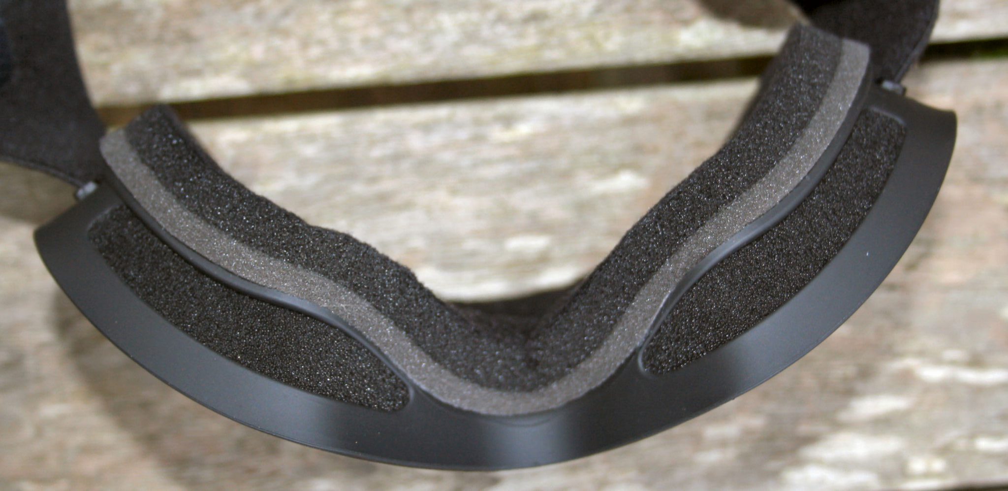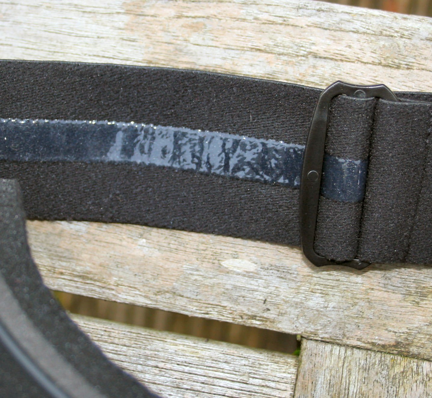 The only other noteworthy point about the straps is the sticky strip on the inside. On a scale of nought to sticky, I’d give it about 8 ie it doesn’t slip on your helmet and the strap-length also does NOT seem to annoyingly change each day.