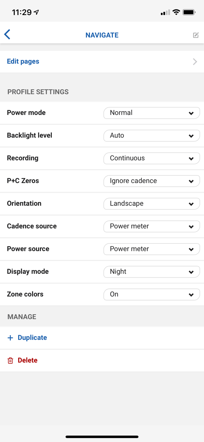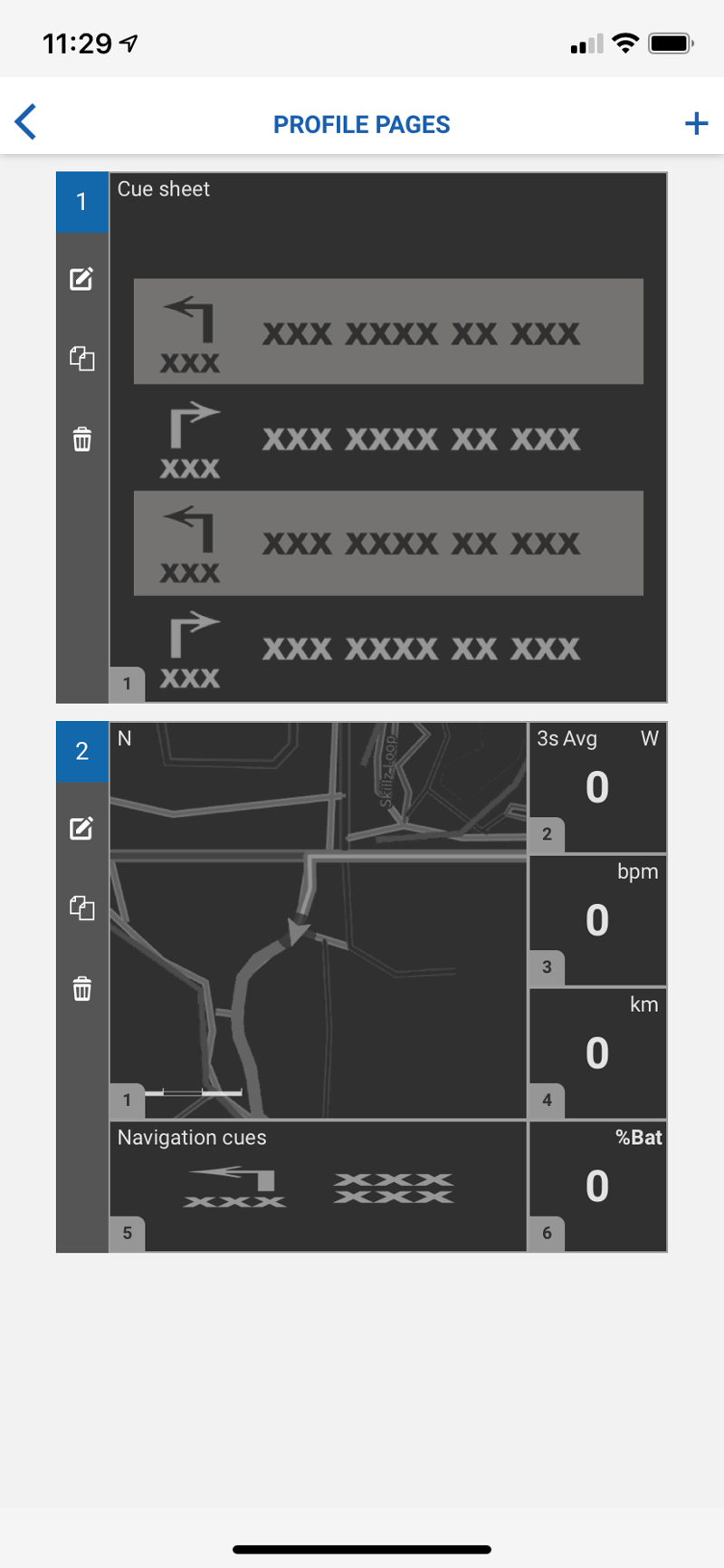 Each ride profile is highly configurable. Here’s one that I’ve ostensibly created for navigation, with 7 screenshots shown edited on an iPhone.
