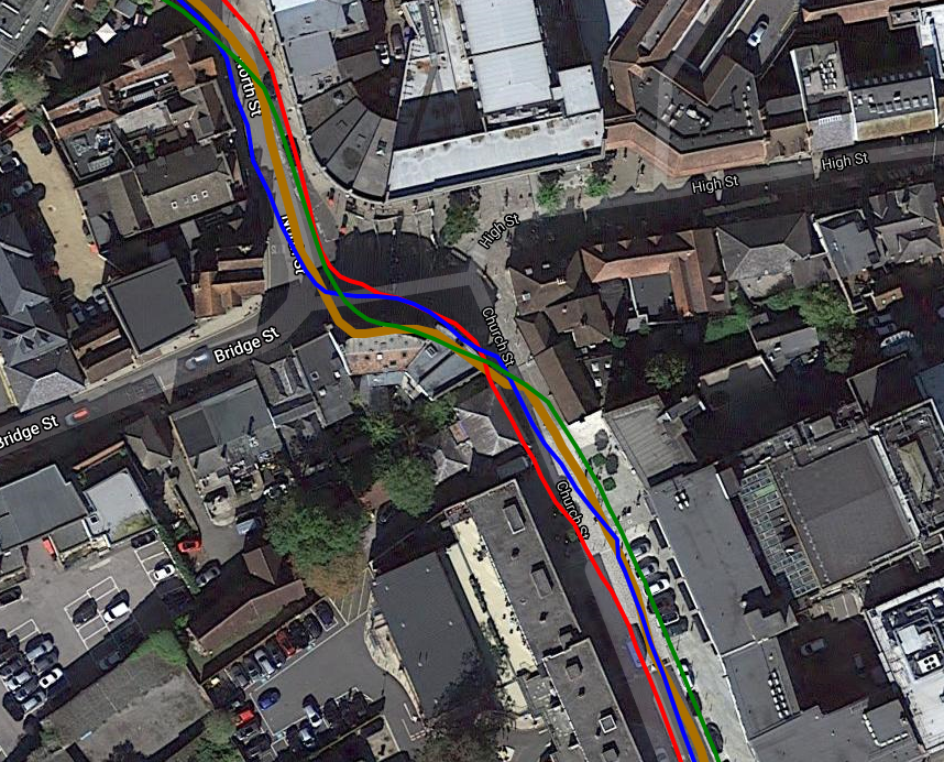 On the same ride, we sample the delights of Leatherhead town centre. The building doesn’t seem to dent the GNSS performance too much.