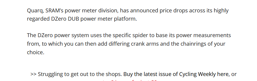 Yesterday 4iiii confirmed some permanent discounts on their crank-based power meters and, according to Cycling Weekly, Quarq have also got into the discounting game today with SIGNIFICANT cuts to DZERO DUB pricing (like $200ish less)