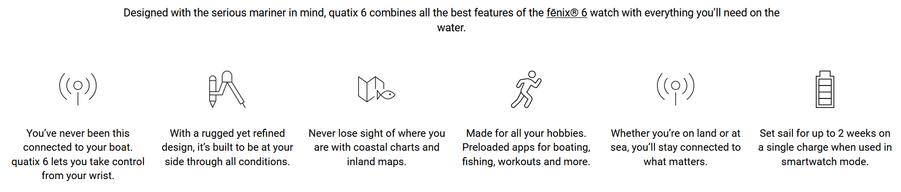 Garmin very recently announced the Quatix 6. I’m only including a note here for completeness as this is a Fenix 6 on seafaring steroids.