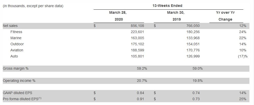 Official Garmin revenue figures for the quarter have been published and show strong growth compared to the same quarter last year with all sectors gaining apart from automotive. The Fitness and Marine sectors show particularly big increases, although the Fitness figures include TACX.