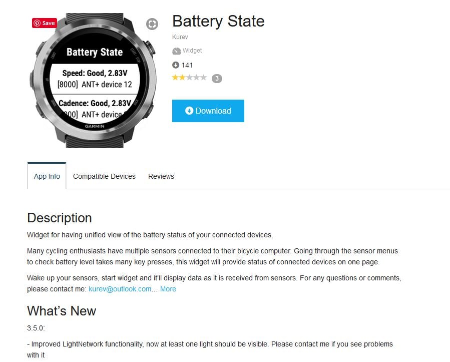 There are lots of Garmin battery apps on the CIQ store. They do lots of different tasks but the new one that looks interesting to me is the Kurev CIQ app which, unusually, is also certified and in the thisisant directory.