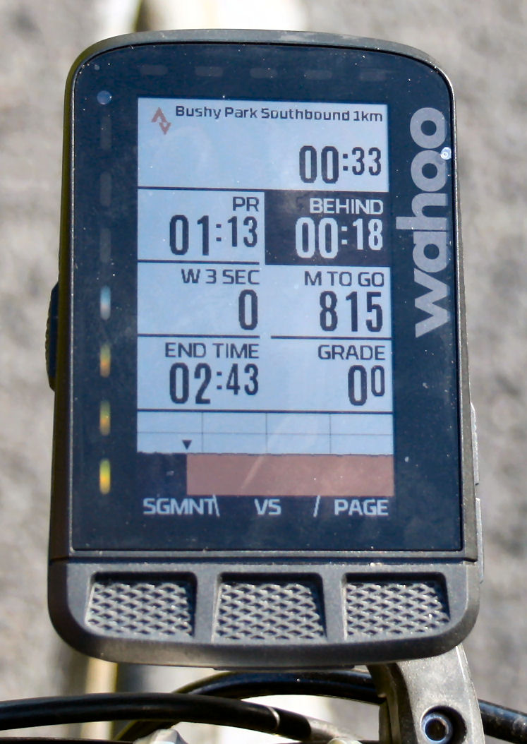 I’ve used the Wahoo quite a lot for Live Segments, especially over the last year. It does the job. It just works. It sometimes starts the segment in the wrong place (GPS inaccuracy) but STRAVA sorts that out at their end in any case. Perhaps my criticism of most of the implementations of STRAVA Live Segments, including that from Wahoo, is that the athlete is just simply trying too hard for those 10 or 60 seconds of eye-popping segment craziness to look at the screen, at least that describes me. Perhaps on a longer segment, I have more time to glance down to see my AHEAD OF KOM/QOM stats? (Who am I kidding…it’s always behind the QOM/KOM)