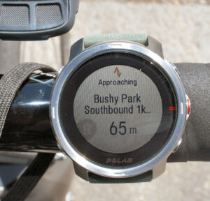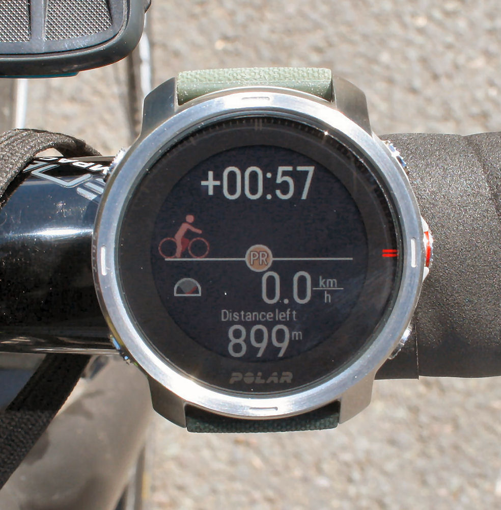 To be fair to Polar, I do find the in-segment info reasonably good. On the second image here you can see I’m 57 seconds behind my PR and that is visually represented by the cyclist’s distance from the orange PR-dot.
