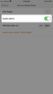 Using the Garmin app that pairs with the radar, and wearing AfterShokz solved the problem for me. The Aftershokz are tremendous. I can get feedback from my phone with NOTHING blocking my ears for situational awareness.