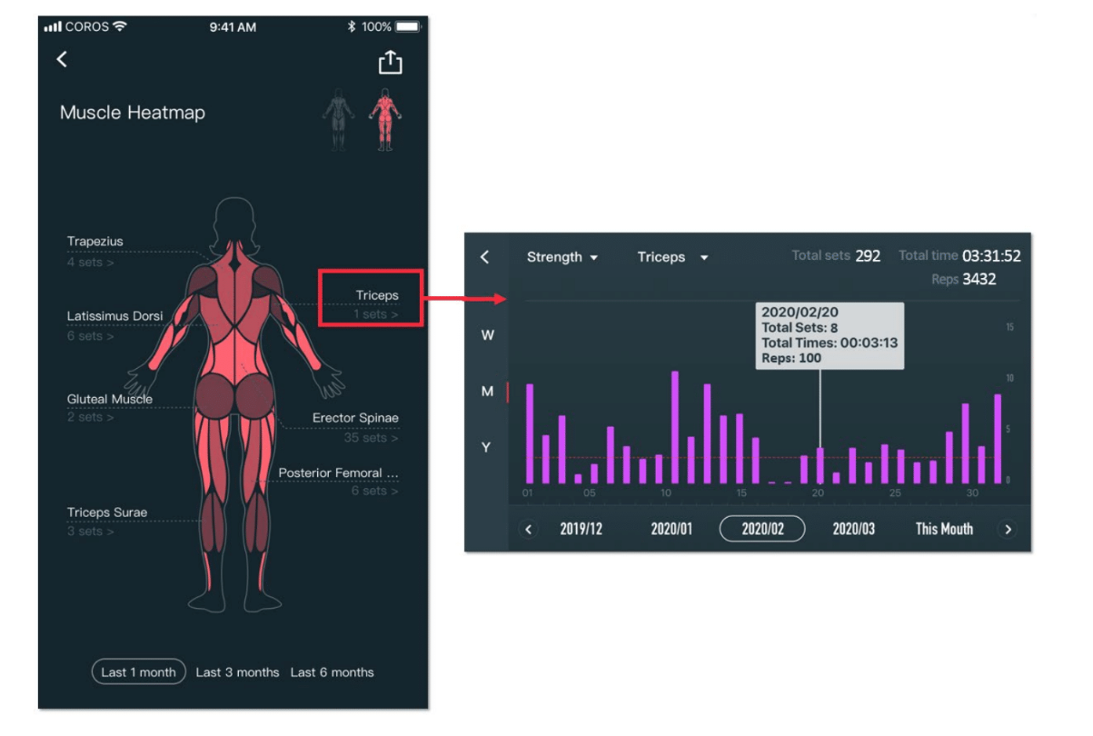 The muscle group heatmap thing has been done before via a company that made the “Actifit” a few years ago. https://merlin-digital.com/fitness-tech/actifit.html