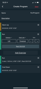 There is no way that I could see to add any kind of nested rep nor have a single multisport workout – but I think that’s OK. Being able to create simple workout steps that target HR, speed/pace, weight (strength) and power (bike) is enough for most people, most of the time. There are some nice touches so, for example, you can create different steps within one workout that target different goals like 2×20′ using HR and then 5×1′ using pace. Another nice touch is that HR intervals are labelled in the library with text like AEROBIC THRESHOLD, rather than the beats per minute.