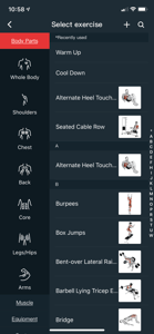 If instead of a pre-planned structured workout, you want to start an impromptu strength workout then, as the following graphic shows, it is possible to add and change the body parts as you go.
