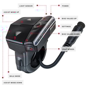 The EOX Remote 500 remote control has a wired CAN BUS cable to your e-bike. For ride data display, you can use either the EOX or Sigma Rox 12.0 to connect to the remote via BLE. The Rox 12 itself is Shimano Steps and LEV compatible.