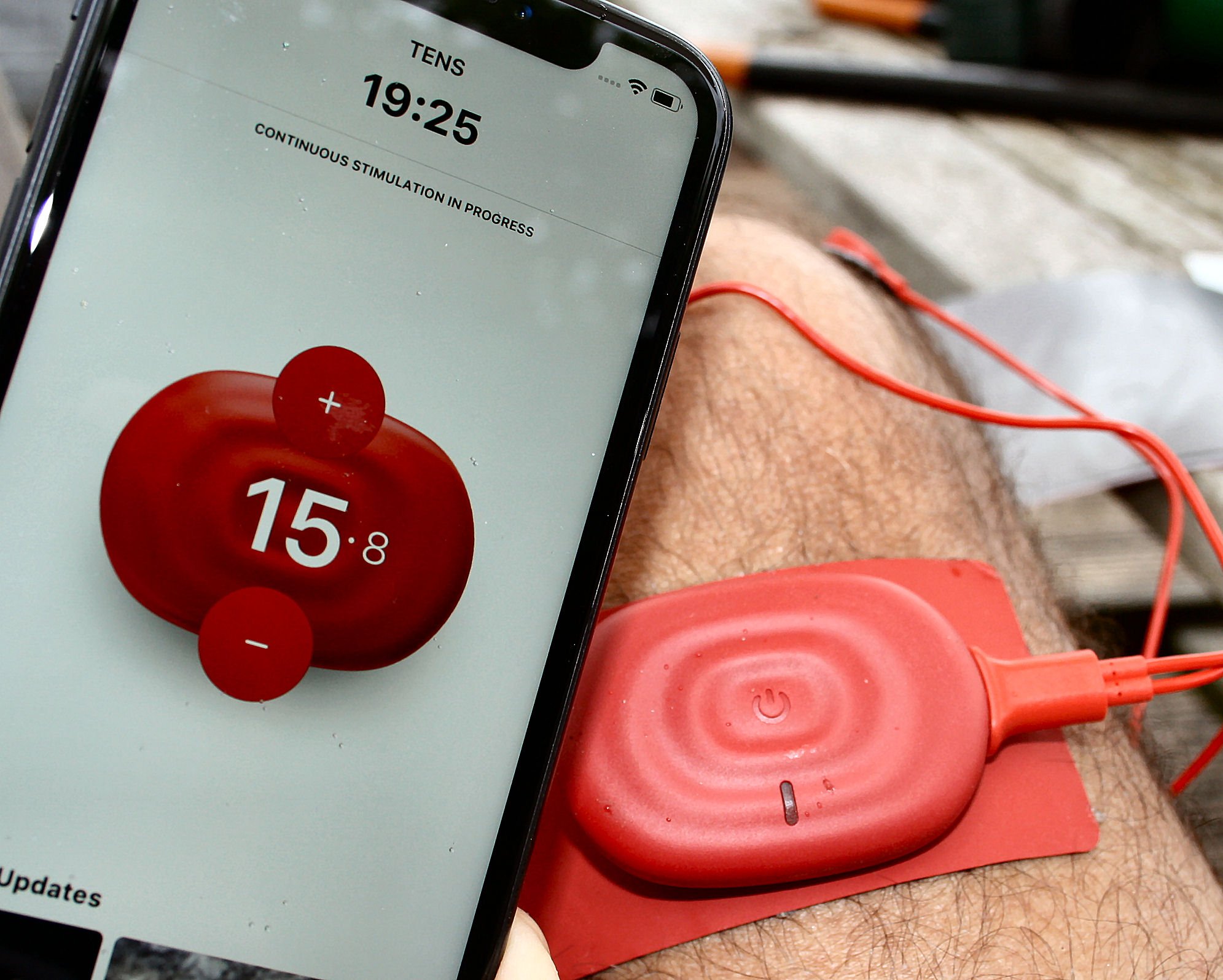 In my mind, the use cases for TENS/NMES products overlap with those of the in-vogue percussive massagers.