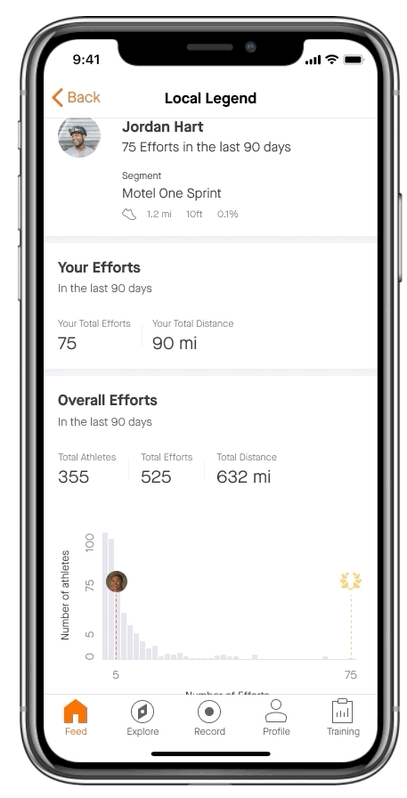 You will also get that same laurel crown emoji shown on the image above, rather than the medal emoji that KOM/QOM athletes still get. You can see it in the results of the STRAVA-designated segments (not all segments) and the app will also tell you how many efforts you need to make to win back your laurel if stolen by one of your many local, arch-rivals.
