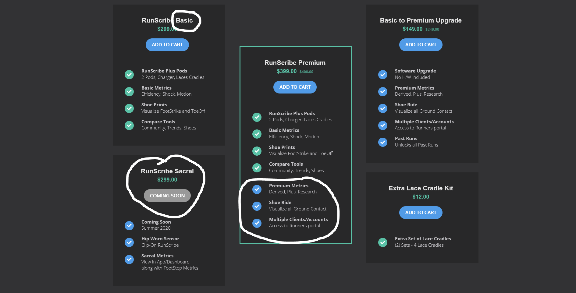 RunScribe has split its single offering into a BASIC and PREMIUM as shown in the following screengrab from their site. The $299 price point starts to get more toward the realms of consumer pricing.