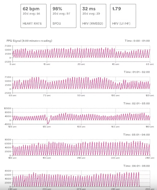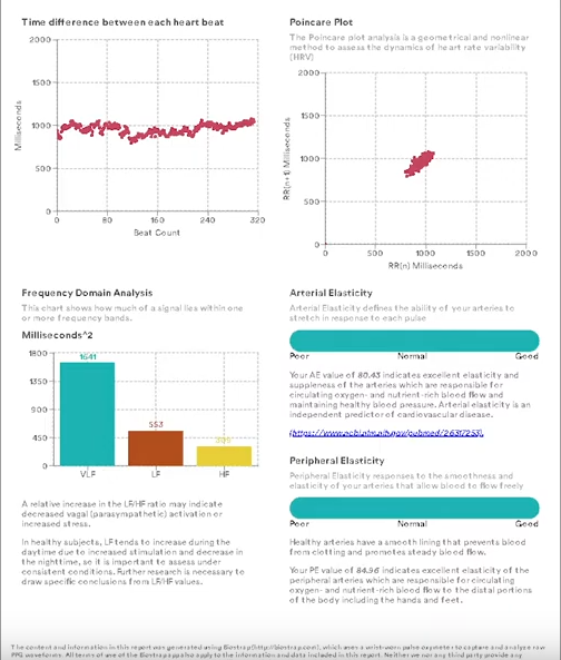 Improved Pulse Report with more in-depth explanations for all the graphs and values, and display of continuous SPO2 and HR values. Plus, selecting the “Save Biometric Session” option will allow you to view the Pulse Report from the Biometric Results page and save it in your Timeline.