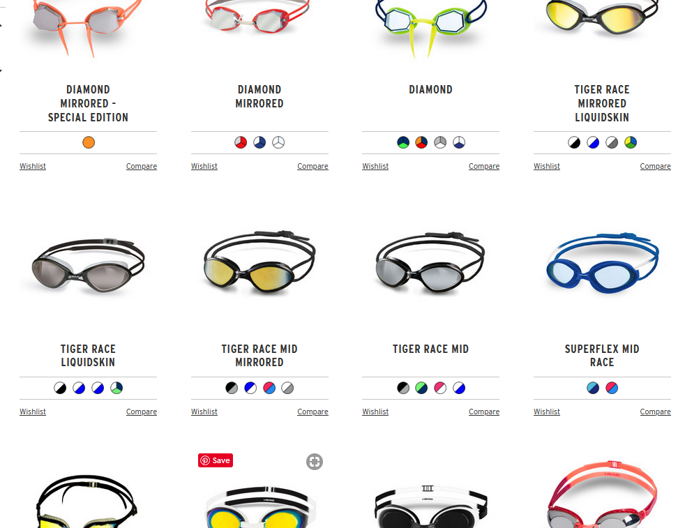 This news of HEAD’s acquisition of a “goggles comapny” is a little surprising a first glance as HEAD already has a decent range of swimming goggles as the following image shows (again from Head’s website)