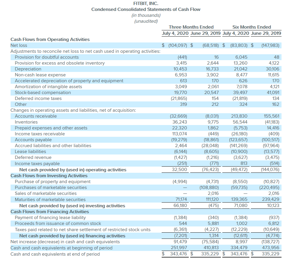 The more difficult to understand figures are cashflow, shown below. Broadly speaking Fitbit are burning cash at a rate of somewhere between $10m and $20m a month. they have $340m in the bank and when it’s gone, they’re gone. Which will bring us on to the Fitbit Versa 3 in a moment…