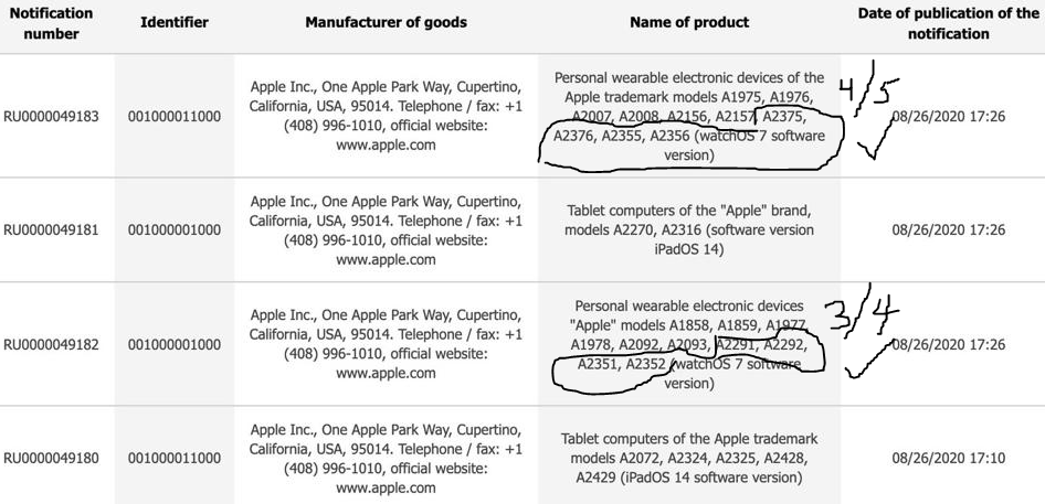 Here are the newly leaked Apple Watch 6 product codes. You can assume that those grouped together share common physical attributes.