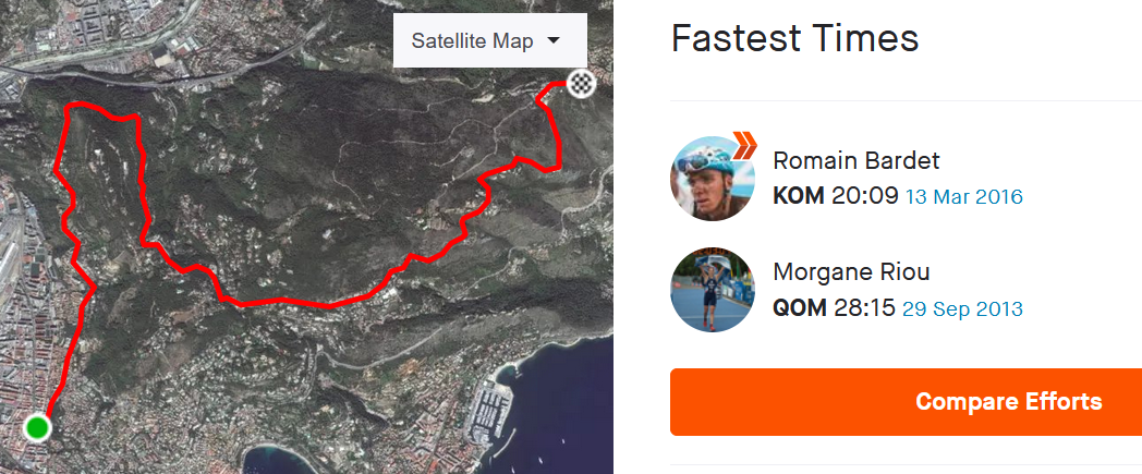 This is the smallest categorized climb. Monsieur Bardet couldn’t quite dip under 20 minutes for his KOM. Could you go under 30 minutes?