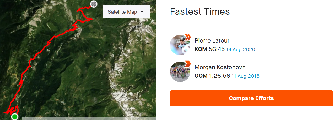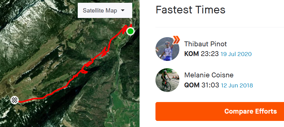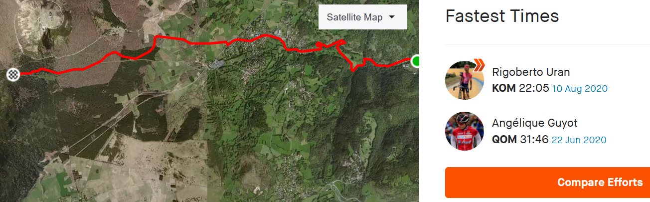 Romain Bardet once again KOM’s this little hill perhaps best remembered for my legendary 2018 ascent where I beat a couple of mates who you’ve never heard of. History only remembers the winners, right? I seem to remember getting ‘close’ to Romain’s time but regular readers here will know that my definition of ‘imminent’ and ‘close’ leave lots to be desired.