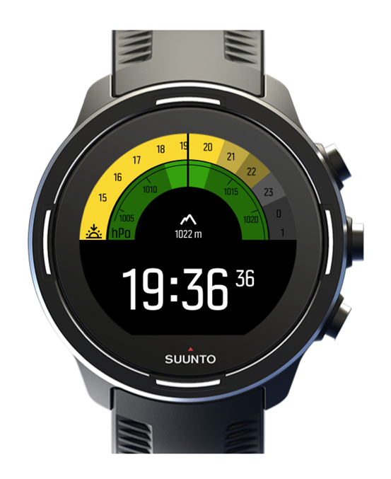 All the Suunto models (9 Baro, 9, 5, 3) get the Sunrise-to-sunset dial with steps. The Suunto 9 BARO gets Air pressure and Altitude.