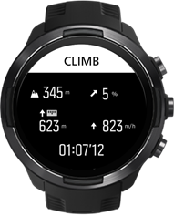 The CLIMB ‘app’ works for extended or repeated climbing activities. So, as two examples, this covers a runner performing fast hill reps as well as a climber trekking up a long hill. The display and recording of the climbs is automated and the trigger is a 10m continuous ascent, once that kicks in you gt to see the climb-specific metrics like ‘vertical metres’ and ‘% grade’. It might also be worth adding that you can also show Grade Adjusted Pace (Suunto call it normalized, graded pace NGP), vertical speed (m/hr) and vertical metes.