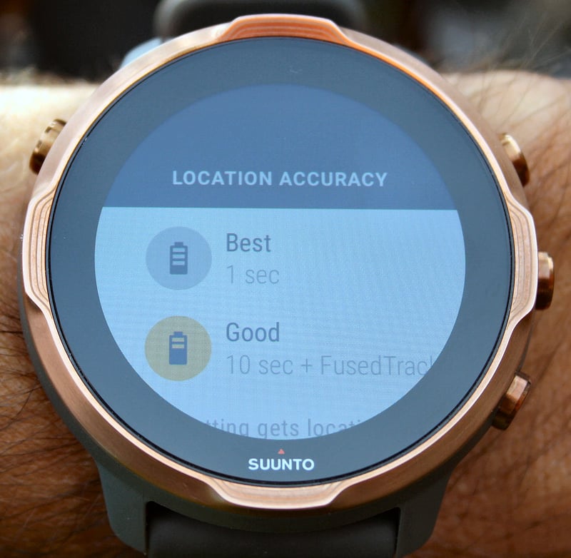 - FusedTrack is a longstanding Suunto feature on its other watches, it’s cool – Lower the battery mode to ‘Good’ and the Suunto 7 takes a GPS reading every 10 seconds and fills in the GPS-track gaps with estimates from the gyroscope, compass and accelerometer. The resulting track is ‘alright’, especially when walking at low-speed, and you can expect a ballpark 20% increase in battery life from using FusedTrack.