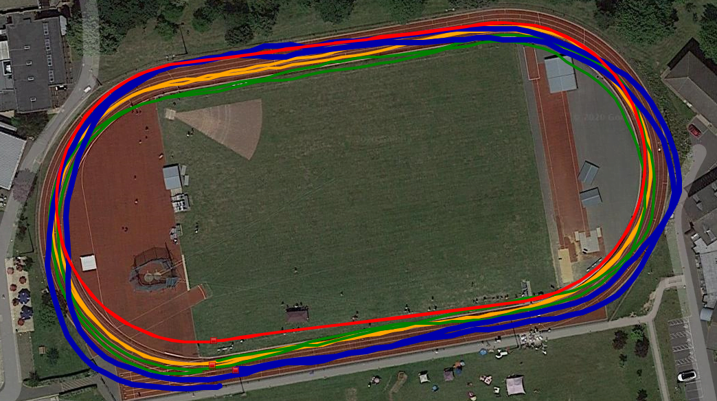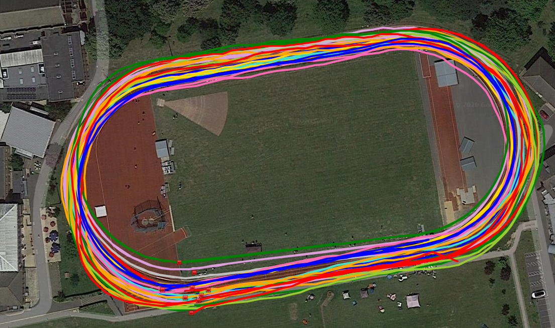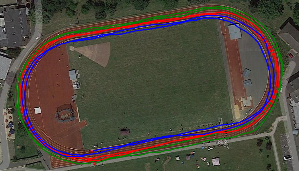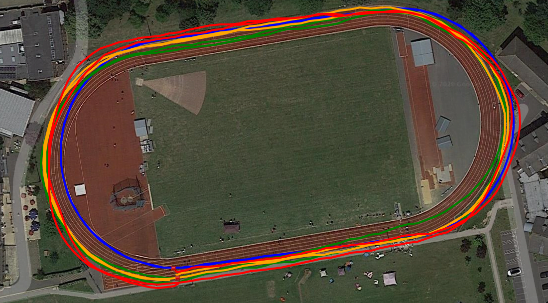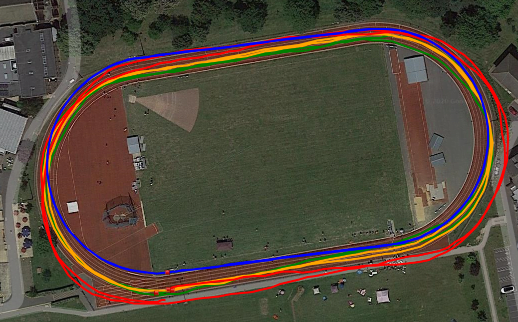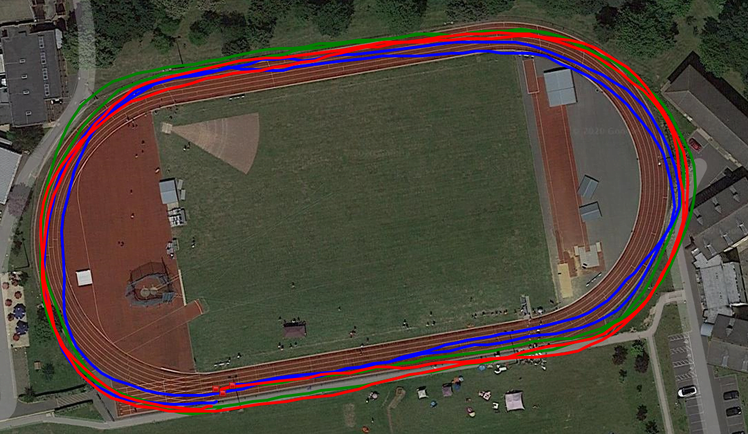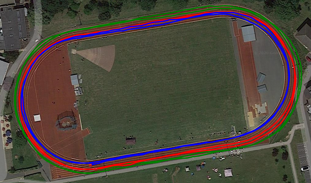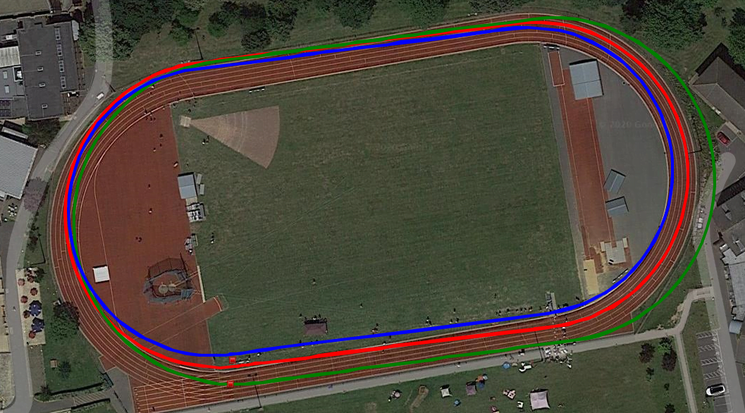 Regardless, most runners want the GNSS track mode function to work like the stopwatch and record 400m as 400m. That’s the trick though. No matter how good the run looks on satellite imagery, the GNSS has to get the start/finish line correct on the track – where our coaches hit the lap button, ignore the distance it thinks we ran and apply 400m exactly (or 440yds or some other distance that’s appropriate – think your favorite training loop with a known distance). With the stated accuracies of each system and other impactful factors: buildings, cloud cover, choice of GNSS, trees, differing track geometries, etc, defining and applying the start/finish line will not be possible for the current systems and hitting the lap button will be the only solution. Given these track modes (assuming we can enter a track distance) and the lap button, we’ll get a pretty plot, accurate distance and correct timing.