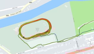 A: Many of us run track at some point and are happy with pacing to stopwatch-lap times but when you want to look at your post-race stats its nice to have a decent representation of where you’ve been running rather than a messy scrawl. As well as that a decent log of the actual distance you’ve run would be great. Normally your watch will record something like this, albeit not as fast.