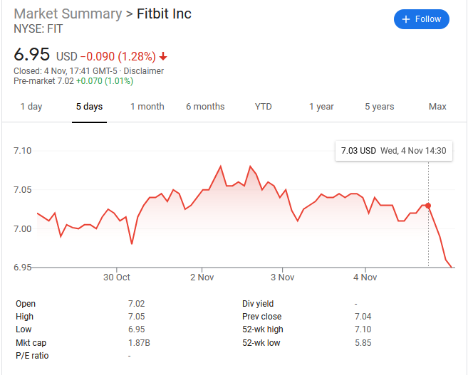 Some positive-sounding numbers from Fitbit did not seem to impress the markets as much as they cheered me compared to recent quarters. Despite a rising NASDAQ on the same day, Fitbit’s share price fell. Presumably the market expected more, so let’s quickly move on and see why there was, in my eyes, some scope for cheer. Let’s start with the stock price.
