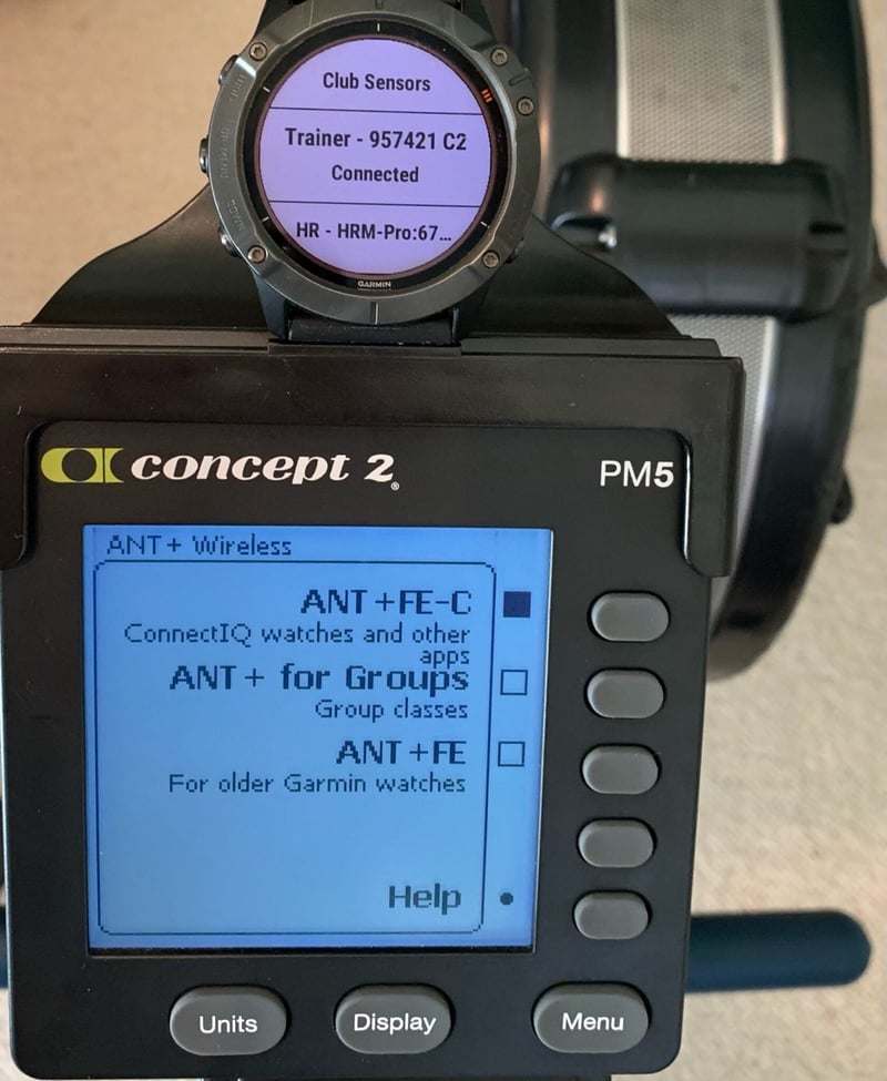 - Added support for displaying metrics from an indoor rowing machine that supports the ANT FE-C profile (e.g. Concept 2 with the PM5 module). This includes new fields for the Indoor Rowing app: Distance, Pace, Power, and Stroke Distance. Check out these images of it working from reader C.Ellisodon! FINALLY !
