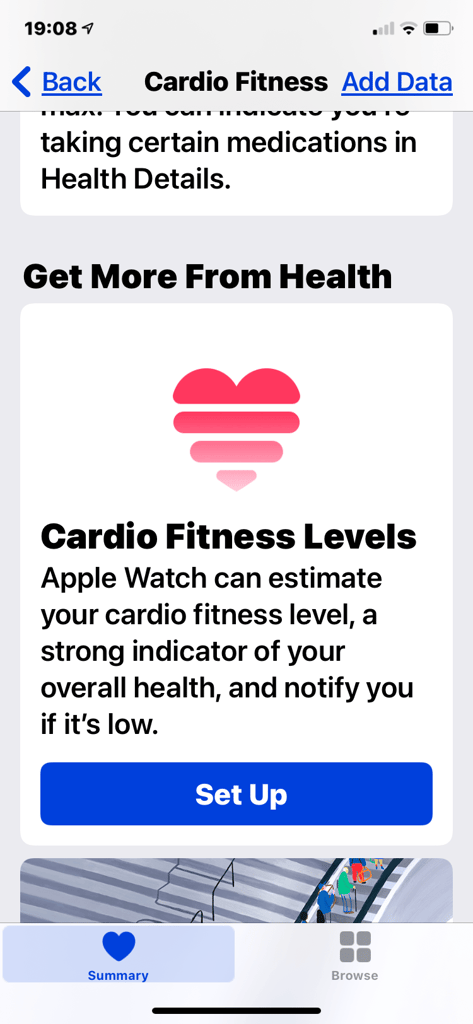 The trend of devices providing quasi-health advice is interesting. I suspect the automatic move bar gets turned off earliest of the nagging-helpfulness bits. The big questions is whether people with a low VO2Max score care or if they instead feel it is fine because they haven’t yet really bothered to improve it. Lots of room for growth from the bottom.