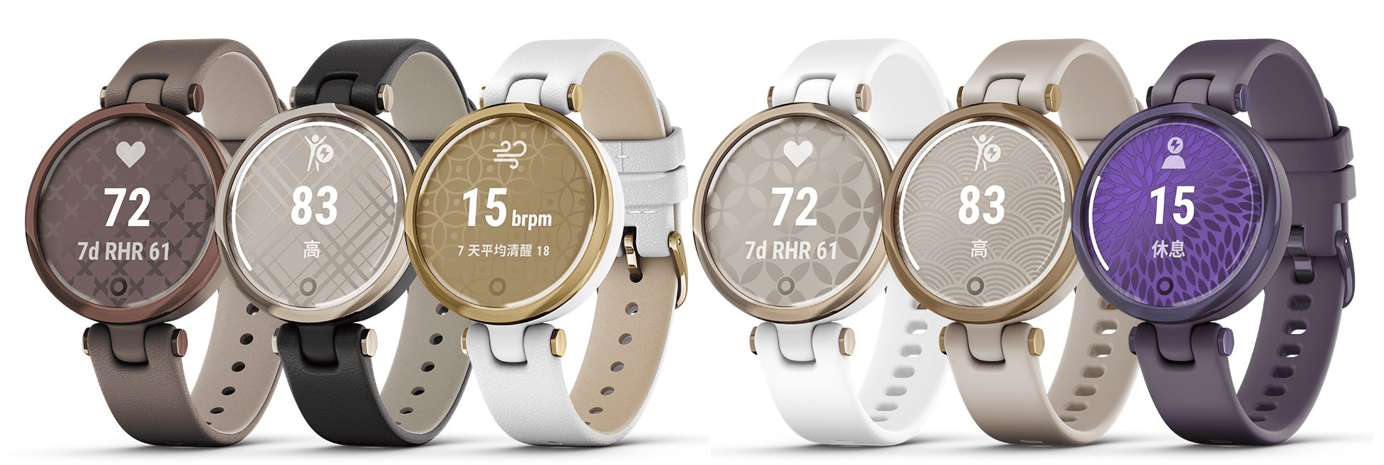Designed by women, for women, Lily’s most notable feature is its small size which is inspired by classic, jewellery-like timepieces designed for smaller wrists. Lily’s 34mm watch case is Garmin’s smallest yet, and its unique T-bar lugs and slender 14mm band enhance the overall feminine aesthetic. Lily features a unique metallic patterned lens that reveals a bright liquid crystal monochromatic touchscreen display that disappears when not in use. Each of the six different Lily styles has its own lens design, carefully created to be subtle and textural; a refined detail that complements rather than competes. See a behind-the-scenes video on the making of Lily here