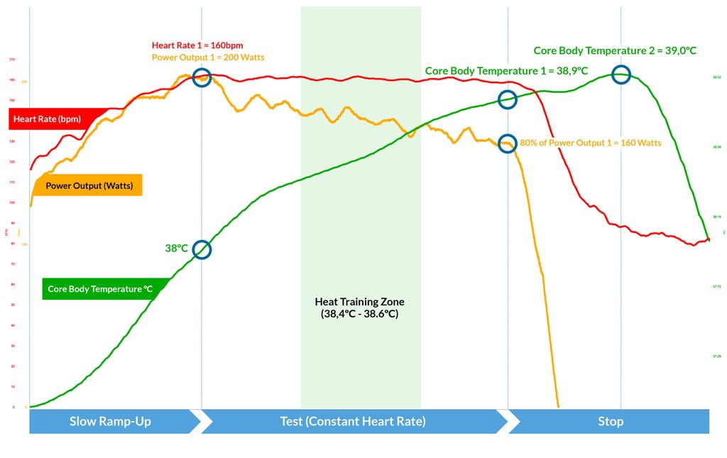 If you try some heat work, the protocol suggested in this image might be a good one to emulate. CORE talk about 80% of FTP as a starting level and 80% of that as the stopping level (with constant HR).