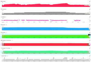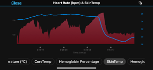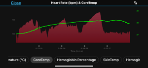 It’s cold here in the UK right now. I’ve got over 20 hours of CORE data but little of it is even close to closing in on ‘interesting’. Sorry. I did decide to test one moment of craziness in my pain cave. Off went the fans, on went a thick cotton T-shirt and my running hat; obviously the right clothing for an indoor ramp test! Once I reached my FTP point, I stripped off and turned the fans on, I had hoped to trigger a temperature alert but couldn’t get my temperature high enough.