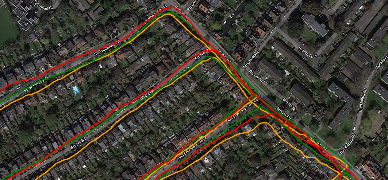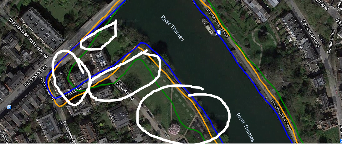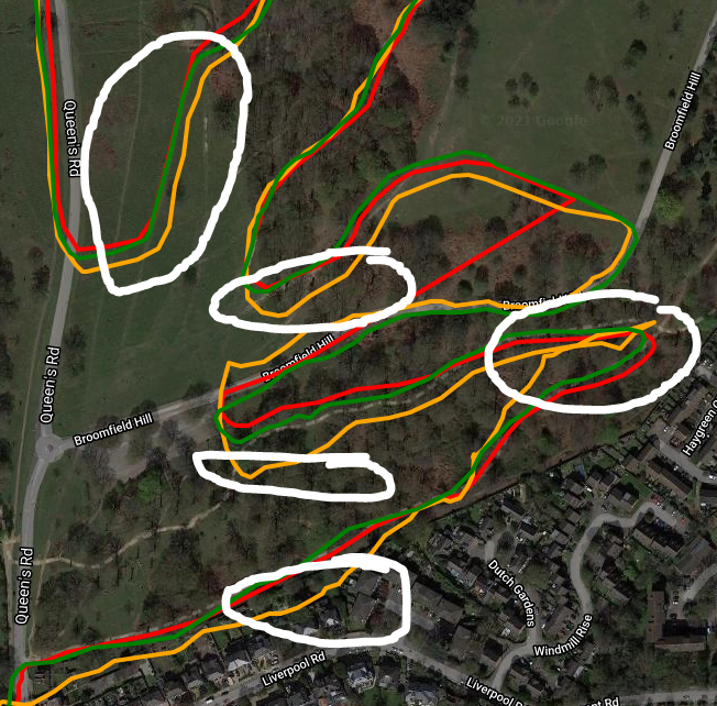 Similar results on a different day, in green this time. For most of this 90-minute run the track was mostly OK but there were a few bad sections like this.