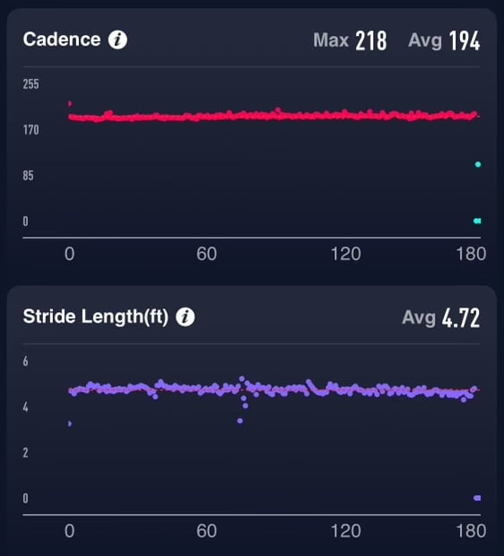 Maybe she used the coros pod? Not sure if there will be stride length without that…